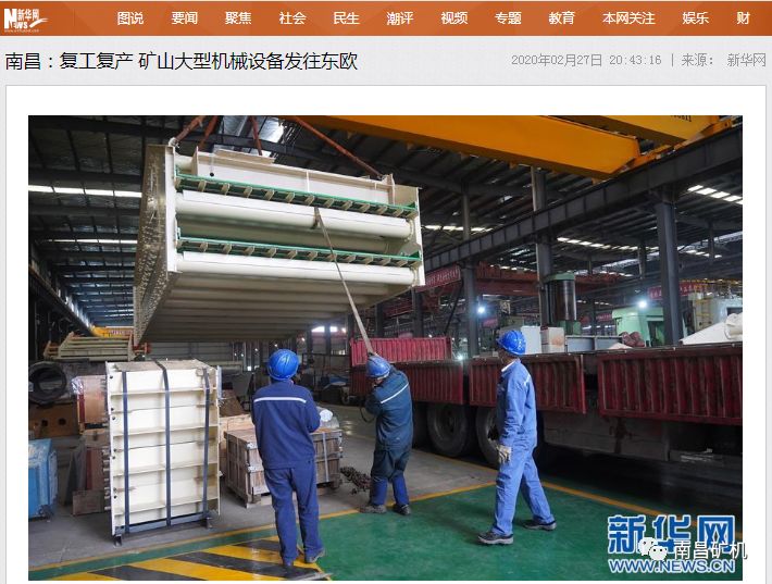 2020年2月27日,新華社記者到訪南昌礦山機(jī)械有限公司(以下簡稱“南昌礦機(jī)”),并對(duì)其通過“抗疫”與“生產(chǎn)”兩手抓,從而快速實(shí)現(xiàn)首批海外訂單交付做了報(bào)道。南昌礦機(jī)生產(chǎn)的3臺(tái)ZKR直線振動(dòng)篩及1臺(tái)BS系列香蕉篩,已于當(dāng)日通過生產(chǎn)技術(shù)及質(zhì)檢部門對(duì)設(shè)備出廠前的認(rèn)真仔細(xì)檢查工作,并順利完成裝車,啟程發(fā)往塞爾維亞交付客戶。