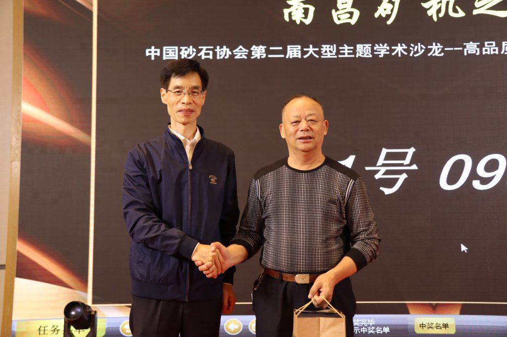 ??中國(guó)砂石協(xié)會(huì)會(huì)長(zhǎng)胡幼奕、中國(guó)砂石協(xié)會(huì)專家委員會(huì)主任宋少民為幸運(yùn)嘉賓頒獎(jiǎng)