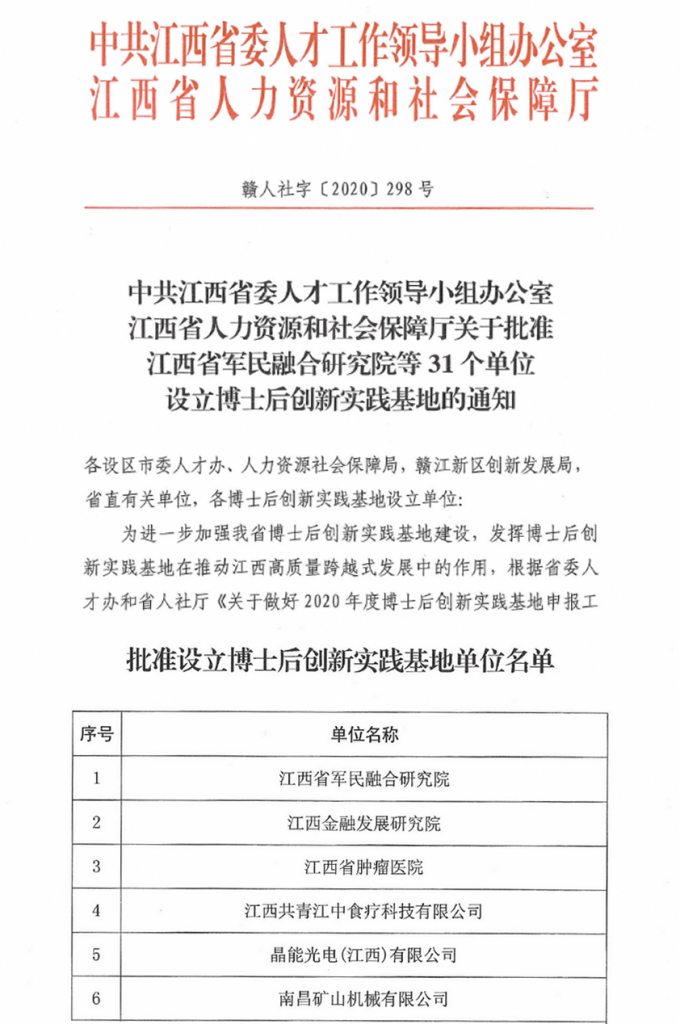 ? ? 本次設(shè)立新一批博士后創(chuàng)新實踐基地,是經(jīng)中共江西省委人才工作領(lǐng)導(dǎo)小組辦公室及江西省人力資源和社會保障廳研究決定,旨在進一步加強江西省博士后創(chuàng)新實踐基地建設(shè),發(fā)揮博士后創(chuàng)新實踐基地在推動江西高質(zhì)量跨越式發(fā)展中的作用。此次南昌礦機獲批為博士后創(chuàng)新實踐基地,再次充分體現(xiàn)了國家各級政府對南昌礦機的綜合實力,尤其是技術(shù)創(chuàng)新能力、科研能力及人才培養(yǎng)能力的充分肯定。