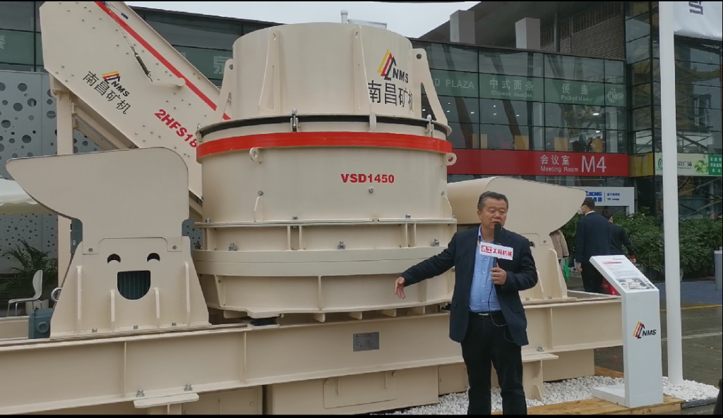 ? ? 今年寶馬展南昌礦機的兩臺設備參展,一是雙腔立軸式破碎機,它是在單腔立軸式的基礎上,做的技術改造、升級。從原來單腔立軸的制砂效果分析,國內基本沒有制砂成砂率大于35%的沖擊式立軸破碎機,但通過南昌礦機的技術創(chuàng)新、改造,這次帶來的雙腔立軸,擁有上下兩個腔,在一根主軸上,可重復打擊石料,使整個成砂率比原來增長了近50%以上。這是目前南昌礦機制砂的核心產品,主體用在我們的制砂樓里面。另一個是高頻細篩,它是為了處理制砂行業(yè)難篩分的物料,結合了如高頻、低幅、篩箱不動、震網等特點的產品,已經廣泛應用在制砂中的細砂處理環(huán)節(jié)。