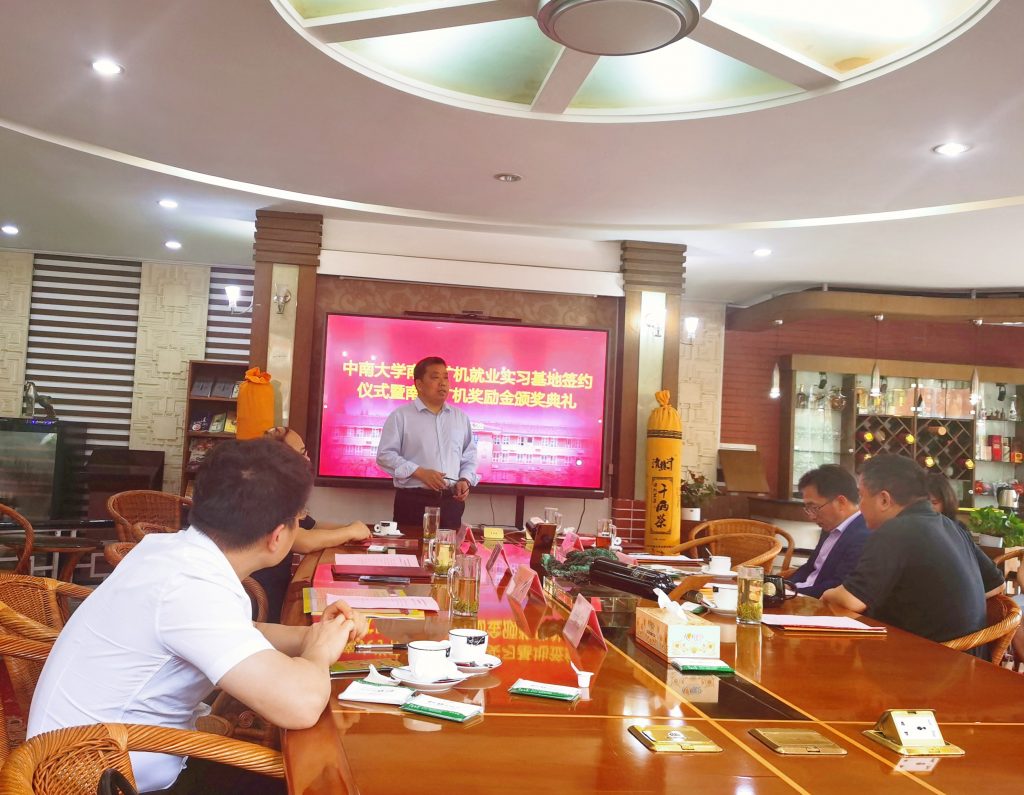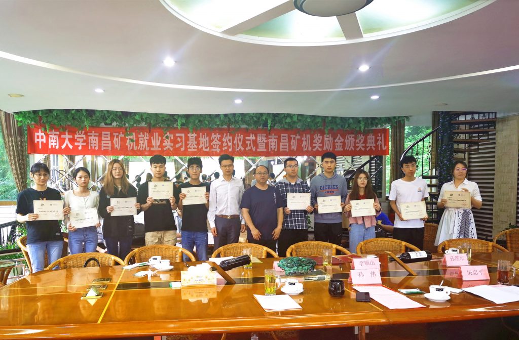 ? ? 5月28日,中南大學南昌礦機就業(yè)實習基地簽約儀式暨南昌礦機中南大學獎勵金頒獎典禮在中南大學舉辦。中南大學就業(yè)指導中心主任徐贊、資源加工與生物工程學院院長孫偉、資源加工與生物工程學院黨委副書記朱忠平,南昌礦機董事長李順山、國內(nèi)銷售公司副總經(jīng)理孫繼東、總裁辦主任唐新燃與獲獎的數(shù)十名學生共同見證了活動的成功舉行。