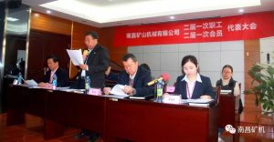 南昌礦機(jī)總經(jīng)理龔友良先生向大會(huì)作了《南昌礦山機(jī)械有限公司企業(yè)工作報(bào)告》。報(bào)告從三個(gè)方面總結(jié)并指出南昌礦機(jī)的發(fā)展路程:一是近年來主要工作,主要闡述了企業(yè)年產(chǎn)值的快速增長(zhǎng)、員工人數(shù)的快速增加、科研水平的迅速提升、行業(yè)地位不斷增強(qiáng)、企業(yè)品牌影響力的增加及積極貫徹國家“一帶一路”戰(zhàn)略部署深入推進(jìn)海外戰(zhàn)略;二是關(guān)心職工成長(zhǎng)與生活,不僅重視員工的工作培訓(xùn)而且還關(guān)心員工的食宿問題,成立了愛心基金幫助有困難的員工,參加市、區(qū)政府組織的交流活動(dòng)豐富員工生活;三是未來工作計(jì)劃,主要是希望加快幸福企業(yè)建設(shè)和“家”文化打造,積極響應(yīng)江西省實(shí)施企業(yè)上市“映山紅行動(dòng)”計(jì)劃并奮力推進(jìn)資本戰(zhàn)略,推動(dòng)車間智能模塊升級(jí),加快新產(chǎn)品、新模式進(jìn)展,穩(wěn)定國內(nèi)銷售市場(chǎng),加快海外市場(chǎng)發(fā)展。