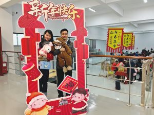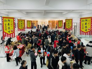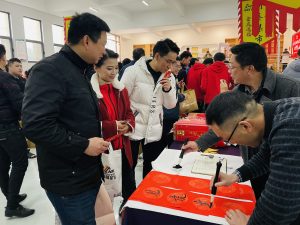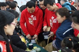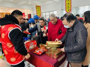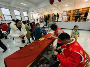 集市現(xiàn)場(chǎng)遍布中國紅,濃濃的年味撲面而來?!跋灿T”攤位前,書法老師現(xiàn)場(chǎng)揮毫潑墨,一副副飽含祝福與喜慶的對(duì)聯(lián)躍然紙上,一個(gè)個(gè)金色的“福”字充滿美好的寓意,大家領(lǐng)到了自己中意的春聯(lián),喜笑顏開;“飾飾如意”、“欣欣向絨”攤位備受喜愛,大家對(duì)精心準(zhǔn)備的禮品愛不釋手;“吃貨”們則被“幸福味道”攤位吸引,極具江西特色的特產(chǎn)小吃極受歡迎;“編福送財(cái)”攤位上,南礦才華滿溢的員工正根據(jù)需求飛快編織手工藝品;“快樂套圈圈”、“拾光”、“福滿窗”等攤位也人氣十足,在歡快的歌聲中,四處洋溢著歡樂和喜悅,其樂融融。