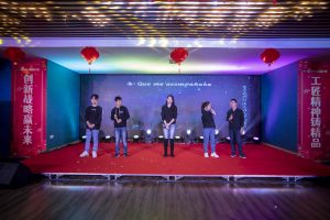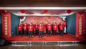 年會(huì)上,還與仍在外出差無法到場(chǎng)和堅(jiān)守海外的員工們進(jìn)行了現(xiàn)場(chǎng)連線,為其送上節(jié)日的祝福,并邀請(qǐng)常年駐守海外的員工及其家屬上臺(tái),分享心路歷程。